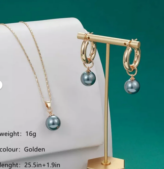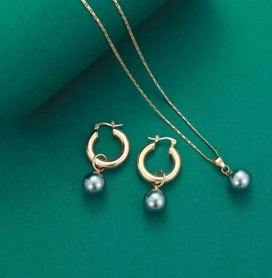 Simple pearl pendant and earrings gold-filled Polynesian set.