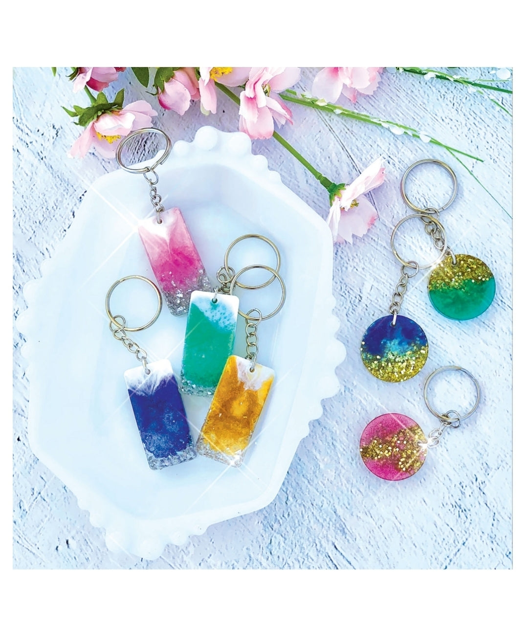 - 5 Silicone Molds include a Geode, Keychain/Pendants and a Box with Lid