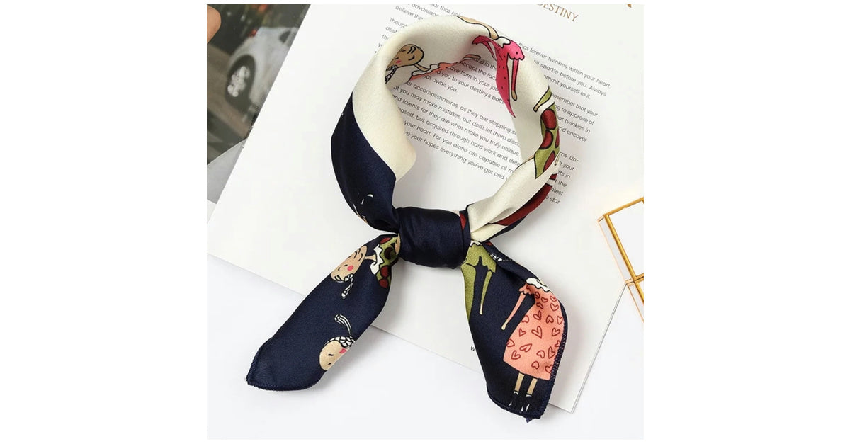 This 50 cm x 50 cm imitation silk scarf is versatile, a perfect accessory for styling as a headband, bandana shawl, or neck scarf.